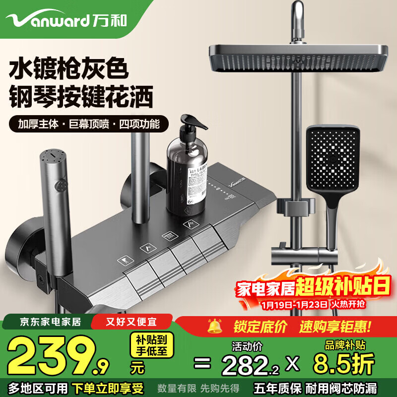 旗舰店万和(Vanward)淋浴花洒套装加厚主体卫浴花洒全套增压花洒喷头浴室淋浴器送安装 枪灰色冷热|琴键四档|加厚主体