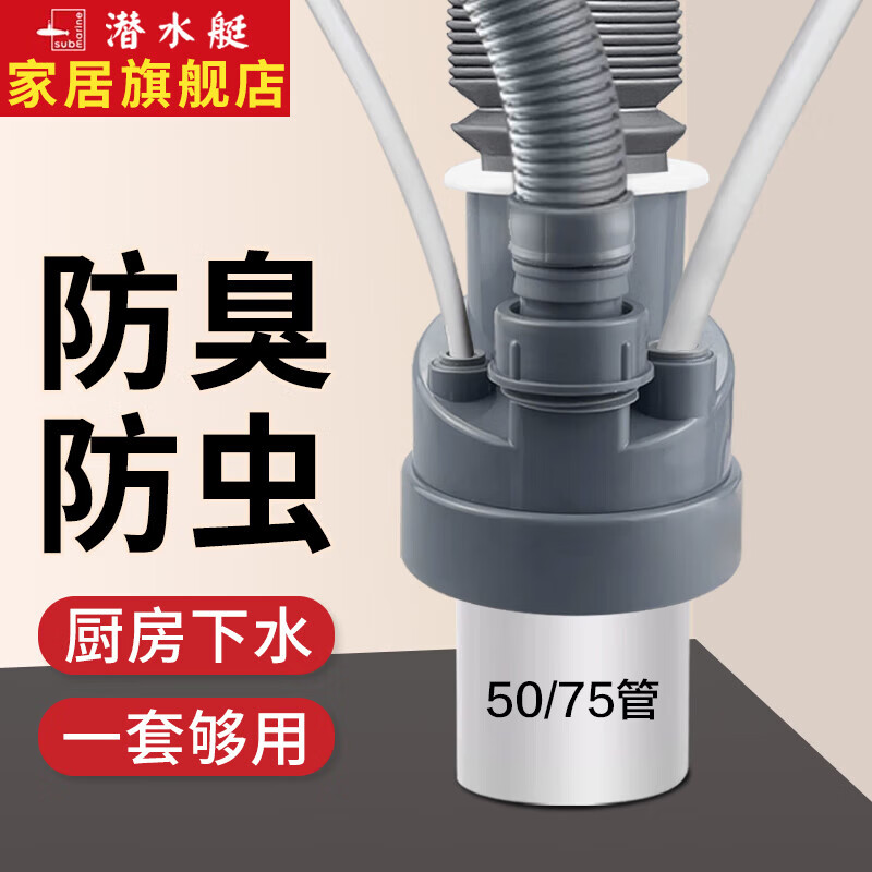 百亿补贴潜水艇(Submarine)厨房下水三通 洗碗机净水器下水管三通接头三合一下水道防臭神器 【1】接水槽+洗碗机+净水器+前置