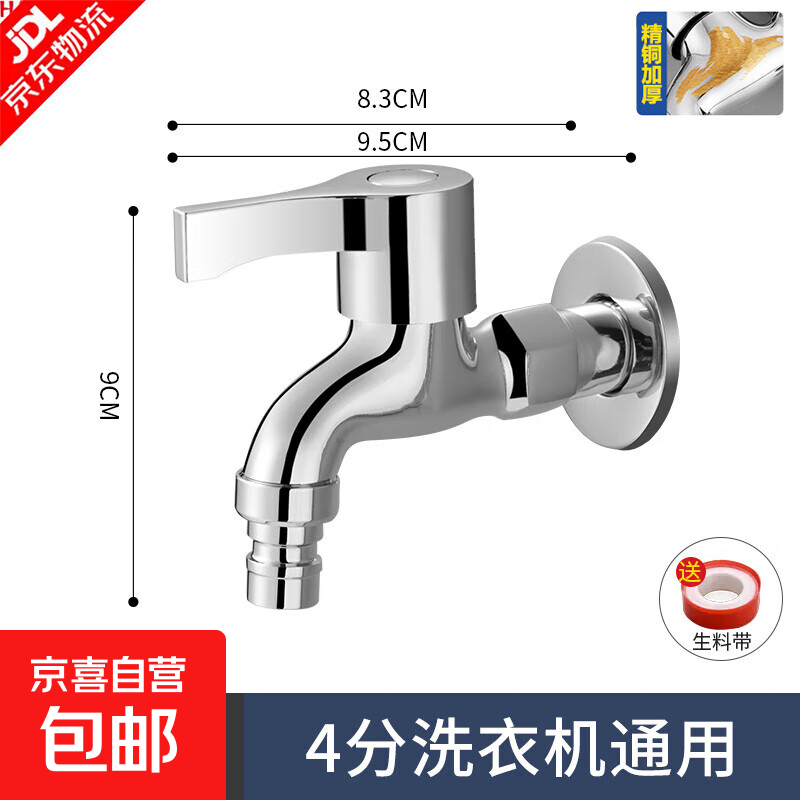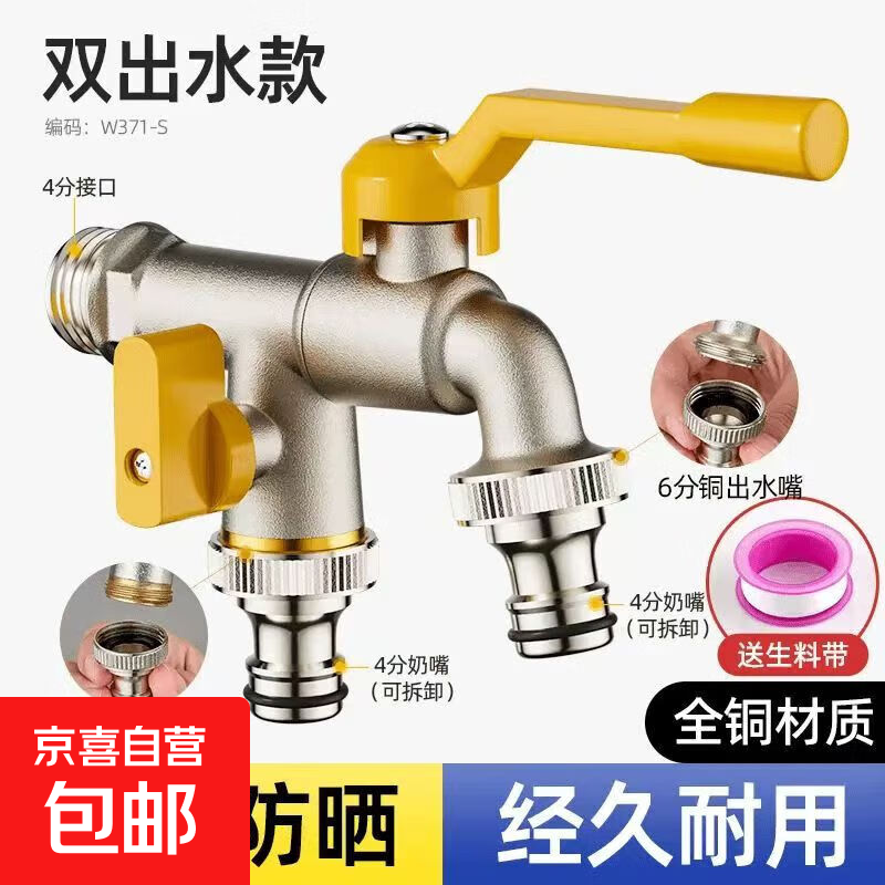 自营九牧王铜洗衣机水龙头专用家用一进二出加长拖把池4分快开水嘴 精铜加厚-洗衣机嘴-短款