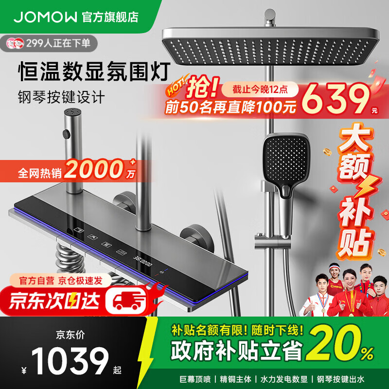 百亿补贴JOMOW卫浴恒温淋浴花洒套装全套一体全铜一体式上门安装2025新款花洒 枪灰色【智能恒温+水温实时显示】包安装/拆旧
