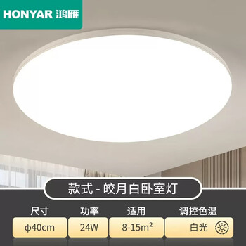 旗舰店鸿雁三防吸顶灯Led阳台卧室灯现代简约圆形超亮调光书房儿童房间灯具 三防灯24W白色40CM【皎白】