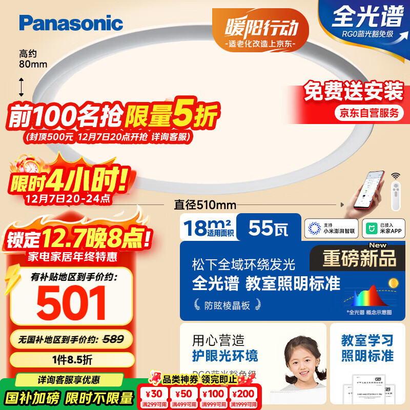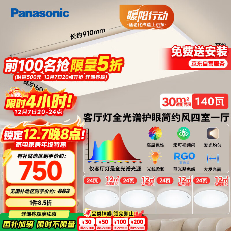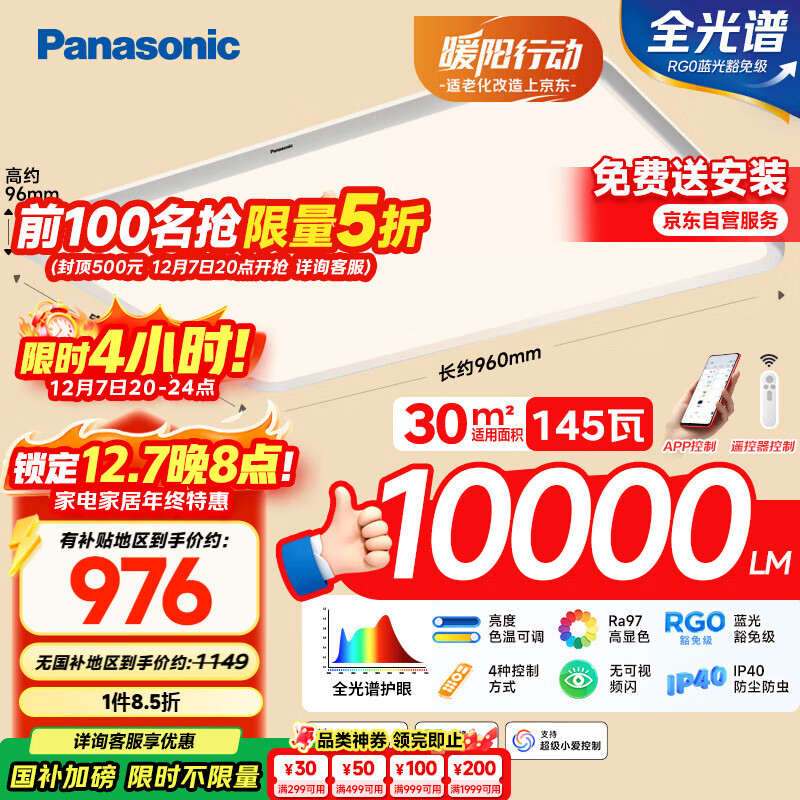 自营松下(Panasonic)吸顶灯全光谱护眼客厅大灯140瓦HHXQX163【国家补贴】【包安装】