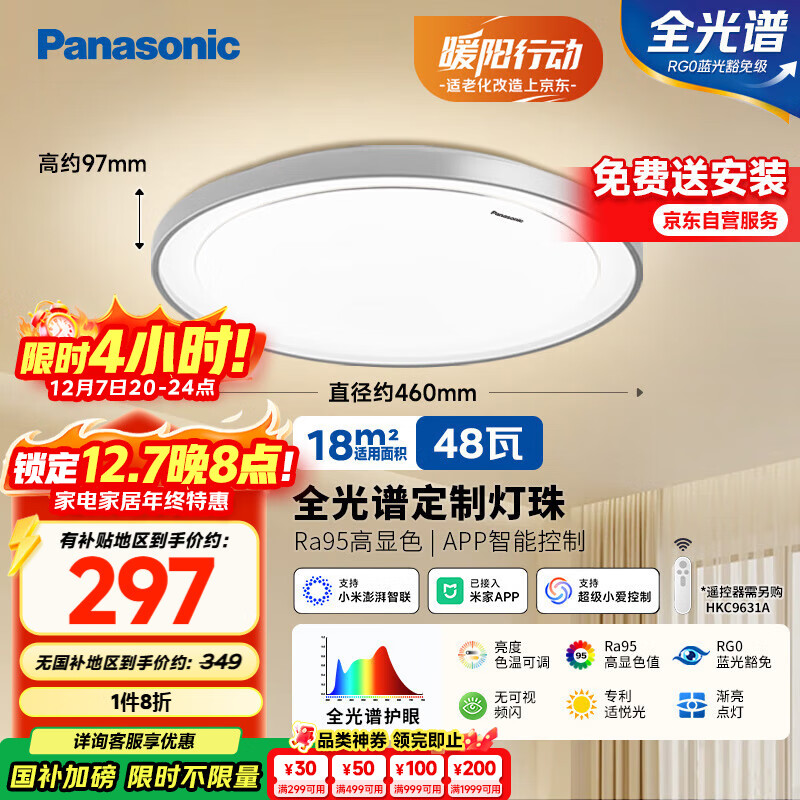 自营松下(Panasonic)吸顶灯智能全光谱灯具48瓦卧室灯HHXS5101【包安装】