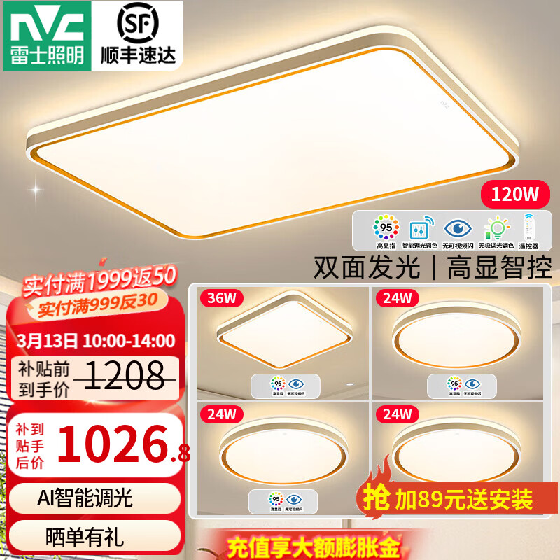 旗舰店雷士(NVC) led吸顶灯时尚创意现代简约遥控客厅灯卧室高显护眼中山灯具2025 力荐【4室1厅】智控客厅+卧室*4