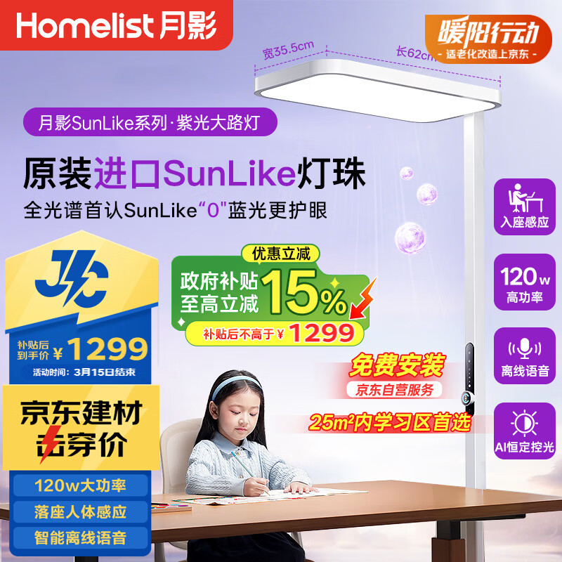 自营月影JC系列海之光紫光大路灯护眼灯学生学习台灯京东自营120W