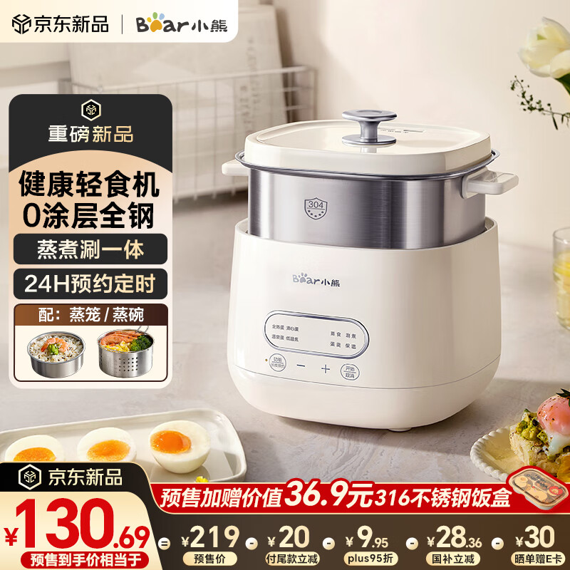 自营小熊(Bear)煮蛋器 蒸蛋器 自动断电小型迷你不锈钢电蒸锅 多功能0涂层轻食机Pro蒸煮鸡蛋一体机神器ZDQ-F12G3