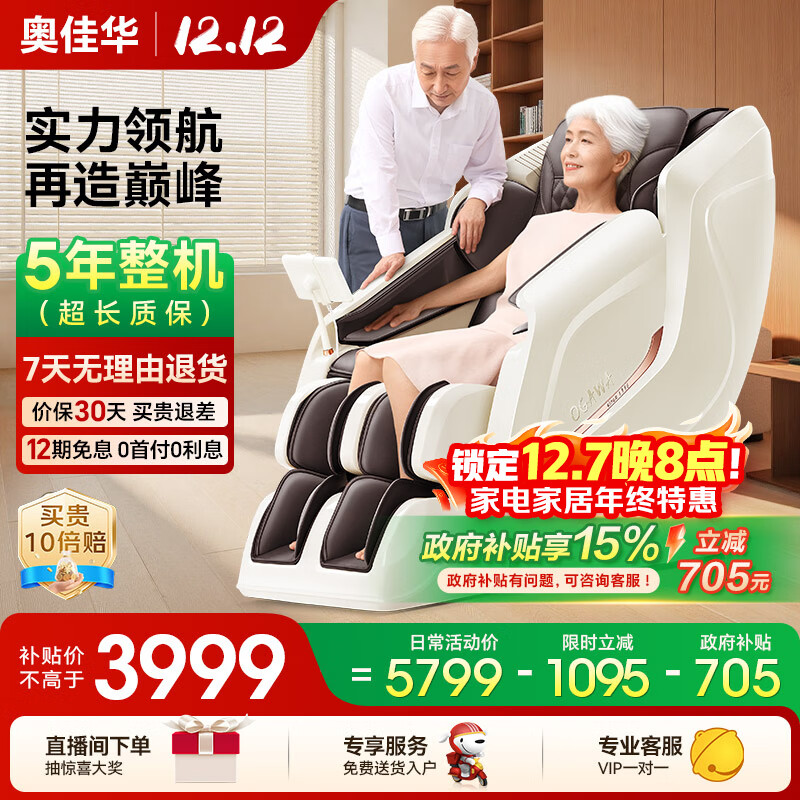 自营奥佳华按摩椅十大品牌家用太空舱颈椎肩颈全身零重力智能摇摇椅政府补贴送老人生日礼物7508pro暮意晚棕