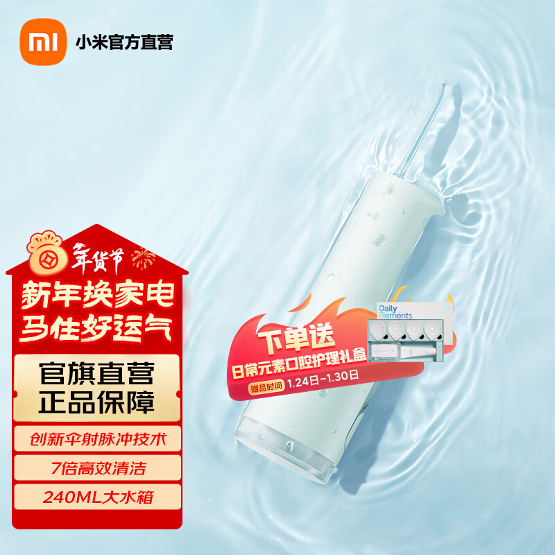 旗舰店米家小米电动冲牙器F300 创新散射脉冲 4档模式3种喷嘴 240ML大水箱 生日礼物节日礼物 米家电动冲牙器F300 薄荷绿 3支喷头
