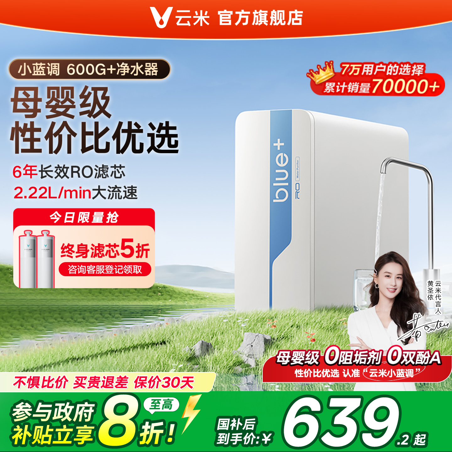 旗舰店[政府补贴20%]云米净水器小蓝调600G反渗透RO净水机家用直饮厨下