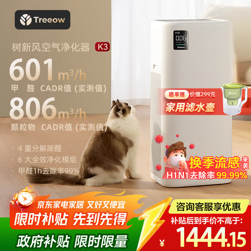 自营树新风空气净化器 除甲醛异味除过敏认证 家用宠物大空间全效K3净化器【家电国家补贴】