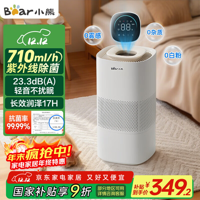 自营小熊(Bear)【紫外线除菌】无雾加湿器 母婴专用卧室空气净化空调加湿器 家用落地式大容量冷蒸发JSQ-H60L2