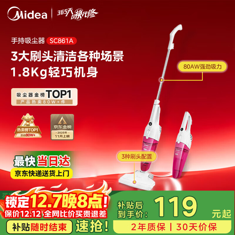 自营美的(Midea)吸尘器SC861A家用手持立式吸尘器二合一强劲吸力【金榜TOP1】