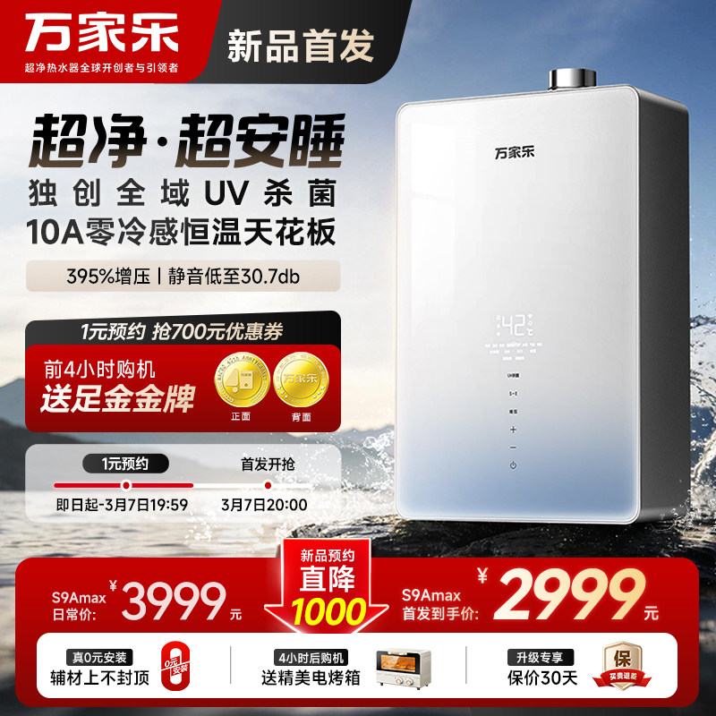 旗舰店[新品]万家乐天燃气热水器S9A超净安睡增压家用节能静音恒温16升