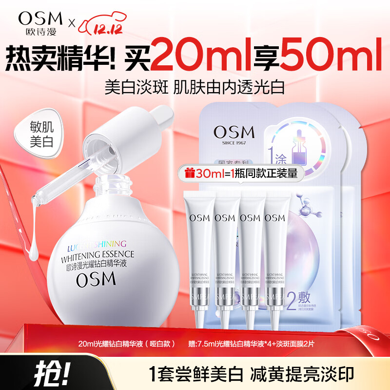 旗舰店欧诗漫(OSM)珍白因美白精华液提亮改善暗沉光甘草定377淡化痘印生日礼物 【尝鲜装】珍白因精华20ml