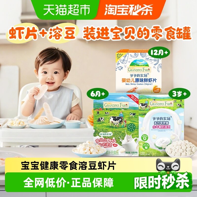 爷爷的农场DHA溶豆虾片磨牙饼干水牛酸奶溶溶豆儿童零食宝宝零食
