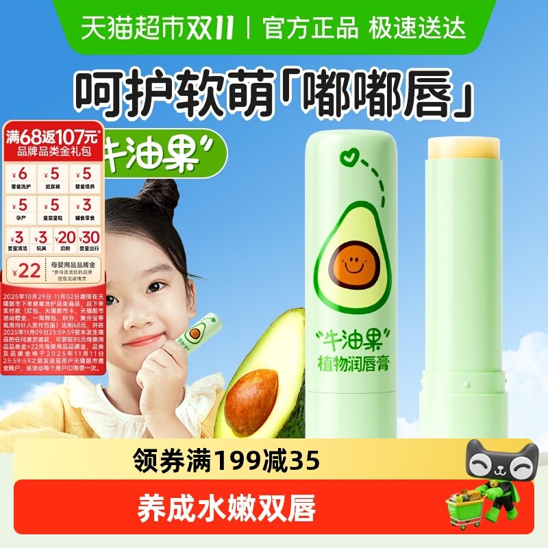 润本婴儿牛油果润唇膏儿童保湿防干裂去死皮滋润补水护唇膏装