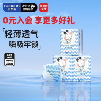 自营巴布豆(BOBDOG)小波浪超柔纸尿裤XXL60片(15KG以上)婴儿加大码尿不湿