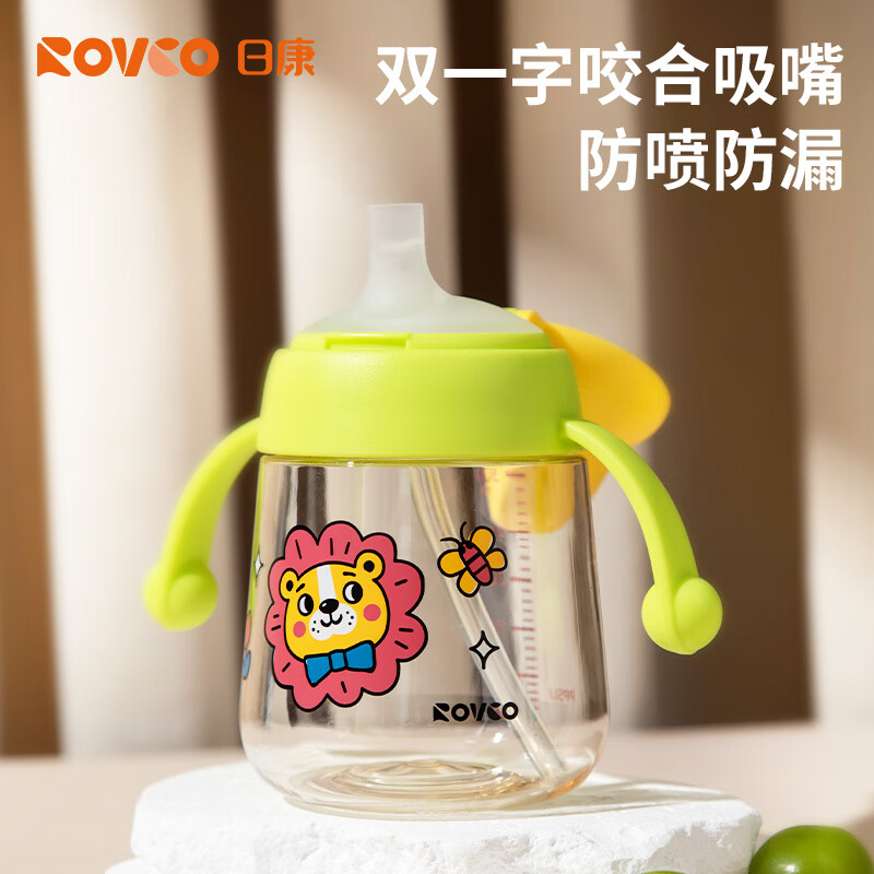 自营日康(rikang)鸭嘴杯儿童水杯学饮杯小学生吸管杯PPSU牛奶杯300ml B1074-2 绿色