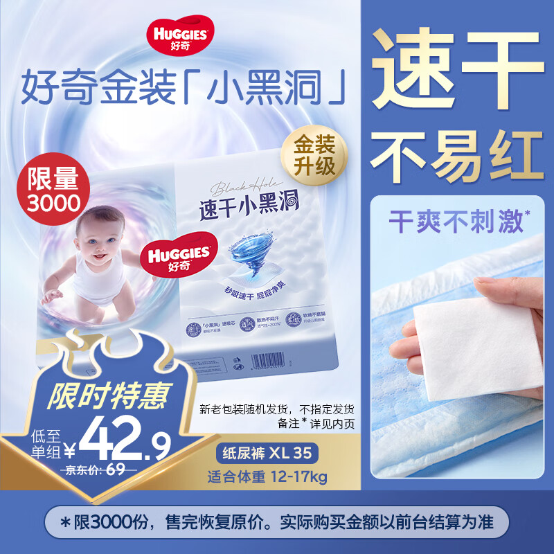 自营好奇金装纸尿裤XL35片(12-17kg)加大号婴儿尿不湿超薄柔软透气