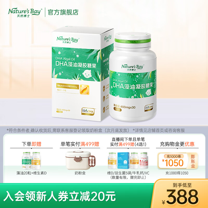旗舰店天然博士dha藻油 小琥珀DHA藻油 dha婴幼儿儿童成人可食用金标藻油dha 【买赠共50粒】金标藻油 30粒*1盒 +20粒*1瓶