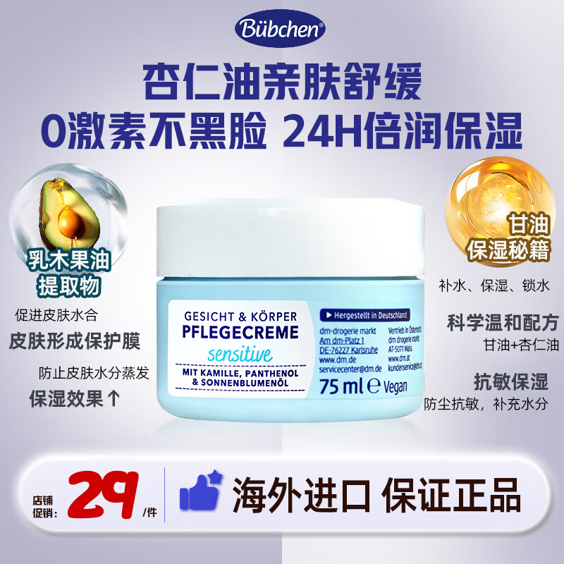 贝臣(Bübchen)儿童面霜75ml秋冬保湿舒缓滋润婴幼儿防风防干宝宝擦脸油德国进口 儿童抗敏保湿面霜75ml