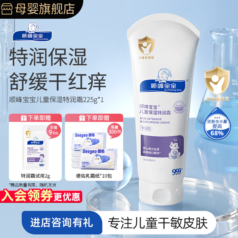 旗舰店顺峰宝宝*999儿童面霜保湿特润霜225g婴幼儿补水润肤儿童霜保湿霜滋润舒缓 保湿特润霜225g