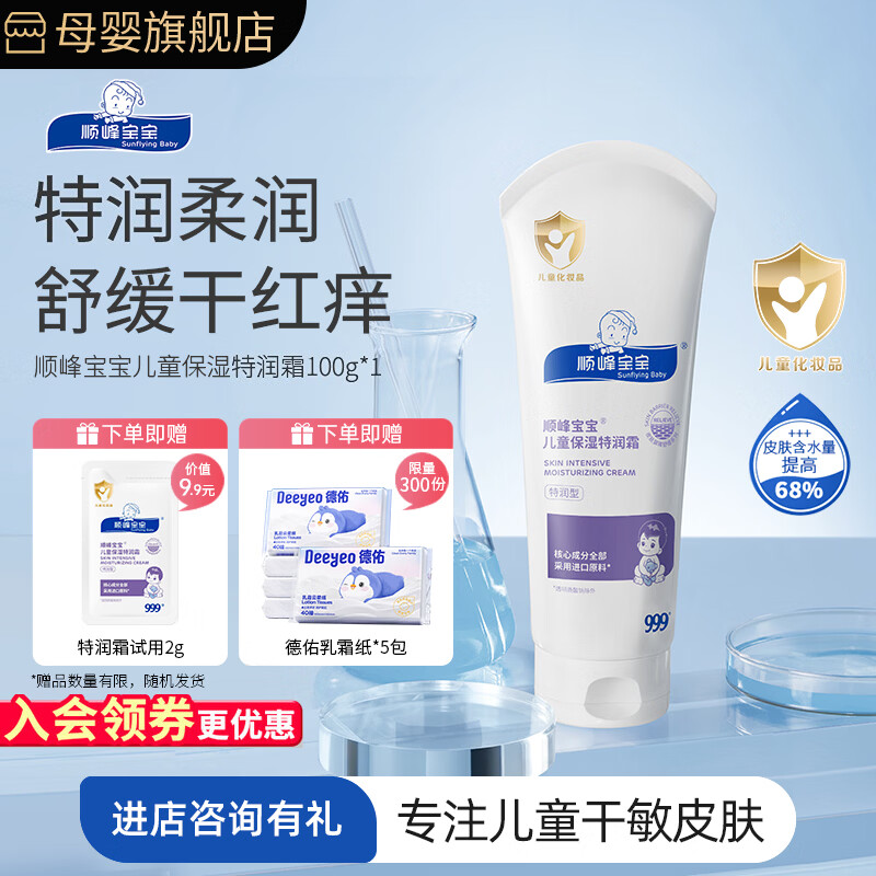 旗舰店顺峰宝宝面霜100g保湿精华霜保湿特润霜儿童婴幼儿温和润肤护肤秋冬补水 特润霜100g(四季皆宜)