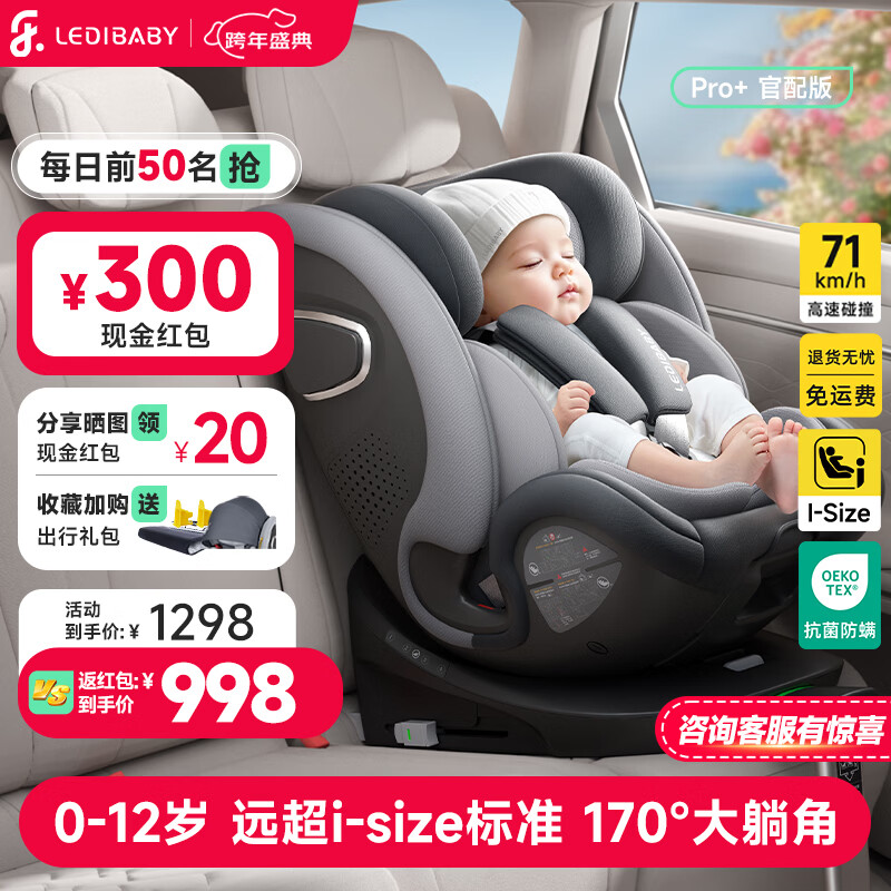 旗舰店ledibaby乐蒂宝贝婴儿童安全座椅0-4-12岁汽车用宝宝座椅车载可坐躺 太空舱Pro+官配版【月影灰】