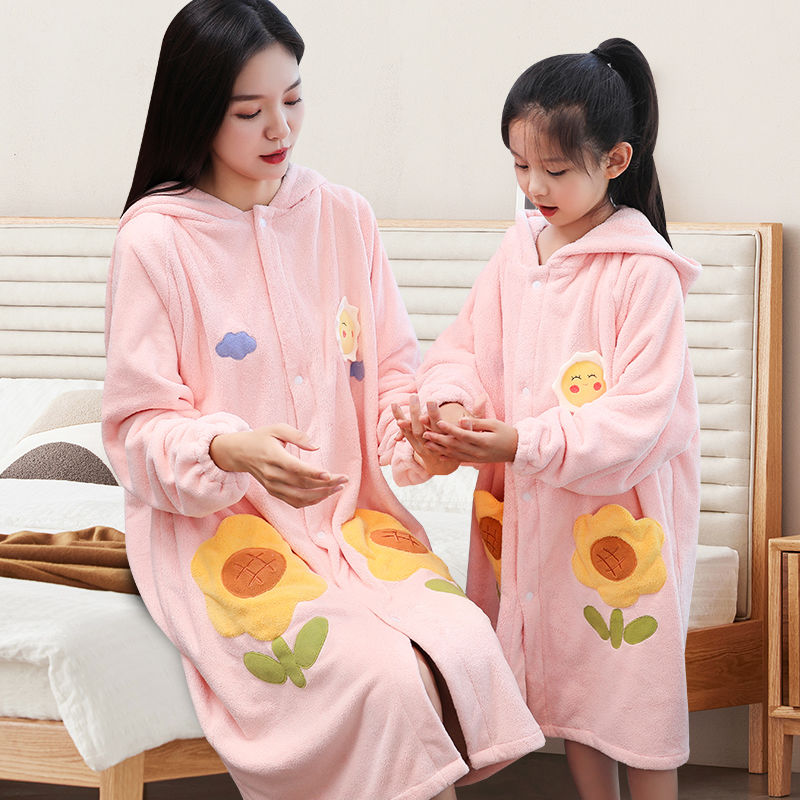 旗舰店好贝尼儿童亲子浴巾秋冬加厚柔软吸水男女童成人小孩洗澡长袖浴袍