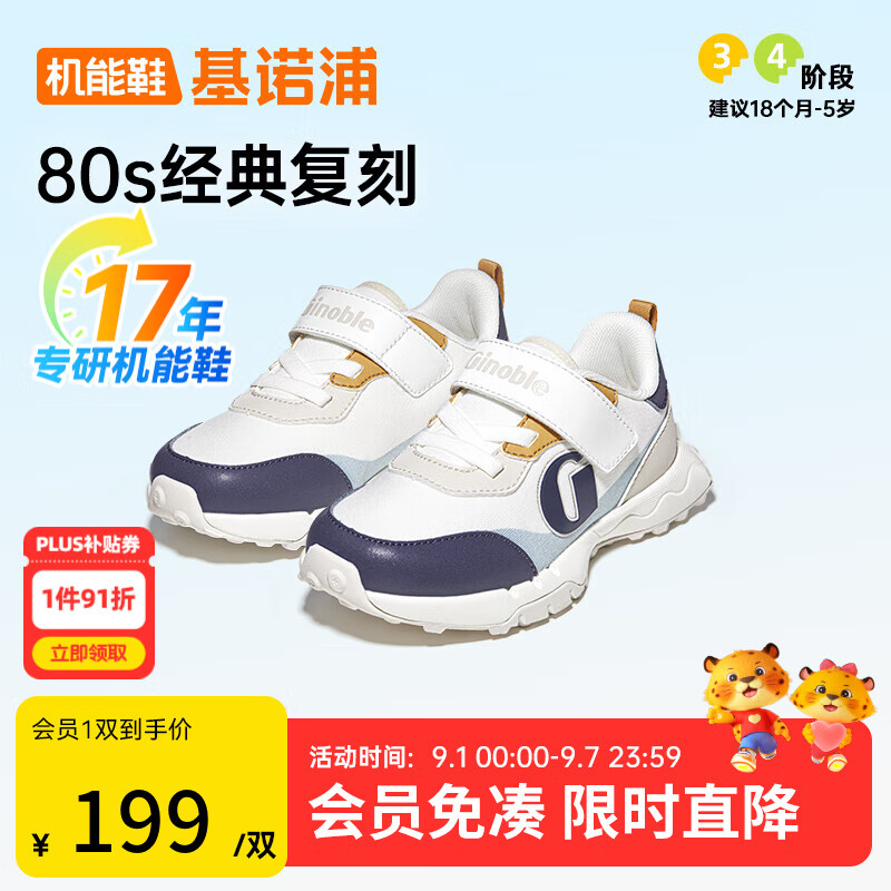 旗舰店基诺浦(ginoble)宝宝学步鞋 男女童软底透气机能鞋 25春季时尚休闲童鞋GW1695 亮白/夜影蓝/月光灰 22.5 140mm 适合脚长136-145mm
