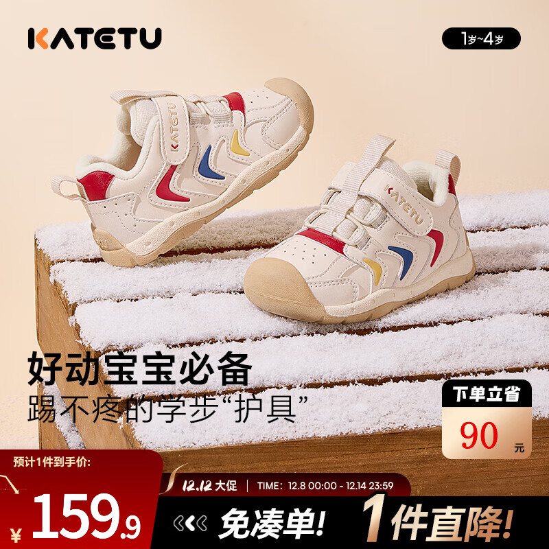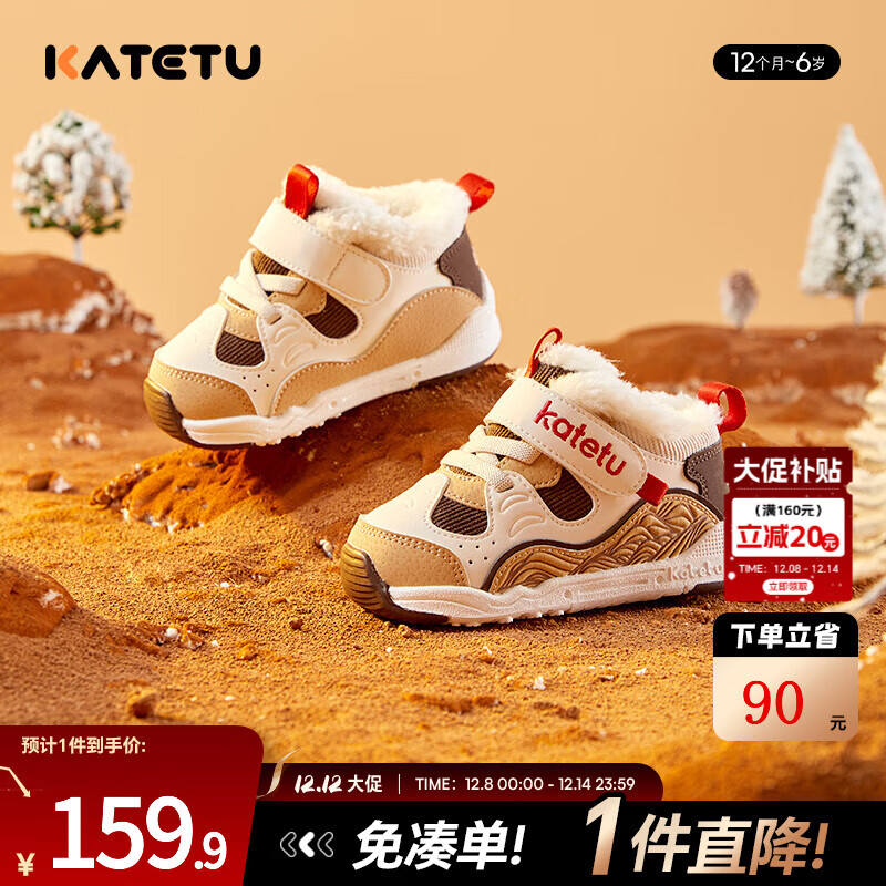 旗舰店卡特兔童鞋婴儿学步鞋儿童棉鞋软底男女童高帮运动鞋冬季加绒加厚机能鞋 米白黄棕 21 内长13.0cm 脚长12.0-12.5