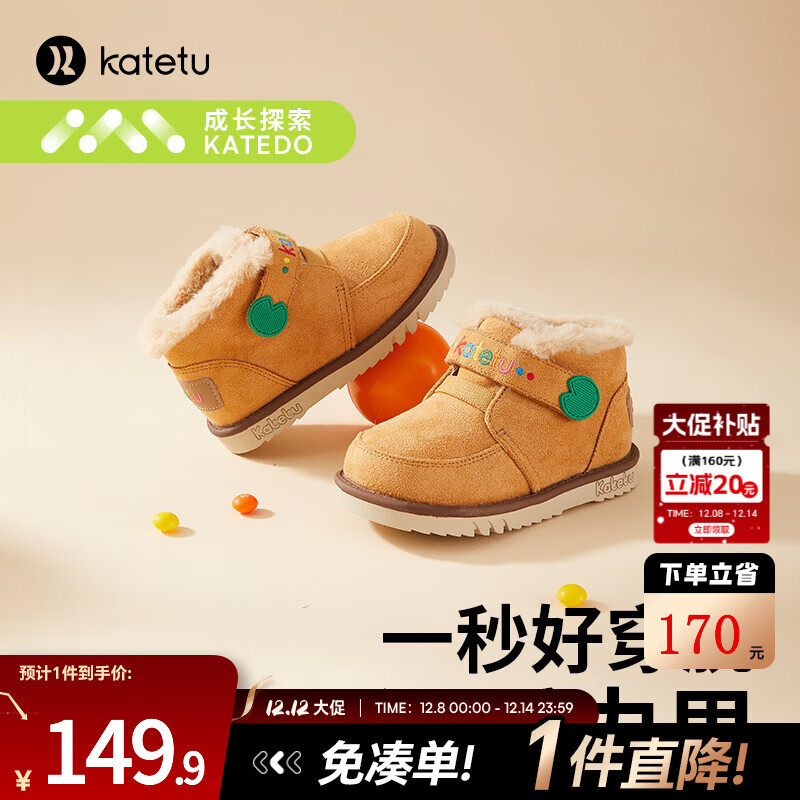 旗舰店卡特兔儿童雪地靴男童女童毛毛鞋2024冬季新款棉鞋加绒保暖棉靴 棕色 26 内长16.0cm脚长约14.8-15.1cm
