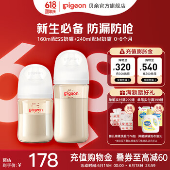 旗舰店贝亲奶瓶ppsu 新生儿奶瓶防胀气奶瓶 宽口径防摔耐用送礼【渠道专享】 160ml 0-3个月 +240ml3-6月