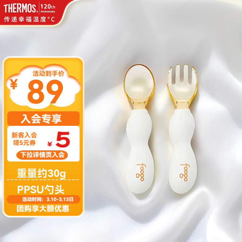 旗舰店膳魔师儿童餐具叉勺316L不锈钢叉子勺子套装宝宝辅食工具带收纳盒 TCAH 糯糯白-PPSU叉勺套组(含收纳盒)