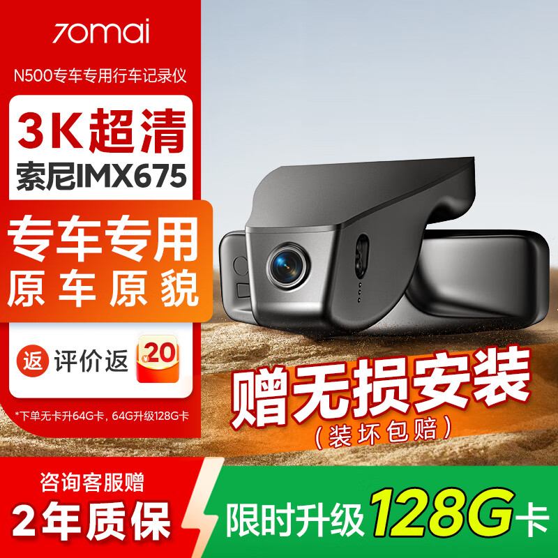 自营70迈 70MAIN500专车专用行车记录仪 车型定制 3K超清夜视 双录128G