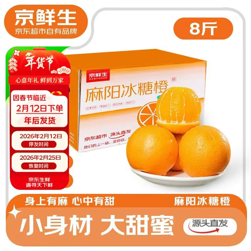 自营京鲜生 麻阳冰糖橙 净重8斤 单果65mm+ 应季水果 源头直发包邮