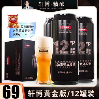 旗舰店轩博精酿啤酒 小麦白整箱装 春日畅享 黄金版12度 500mL 12罐