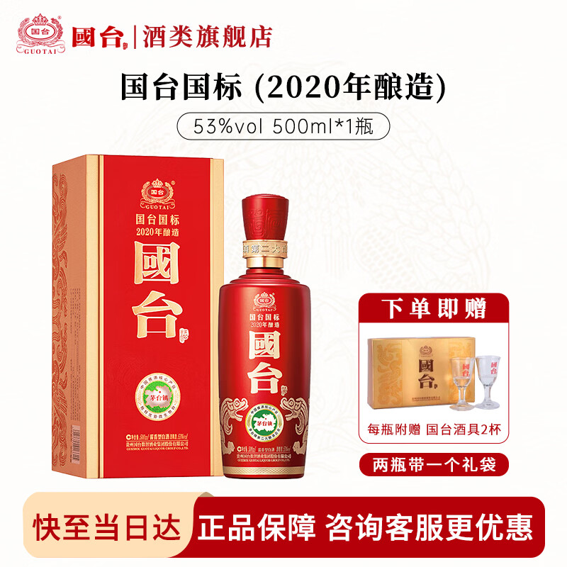 旗舰店国台国标酒 真实年份 大曲坤沙 酱香型白酒 贵州粮食酒水 送礼 礼盒装 53度 500mL 1瓶 国标 单瓶装