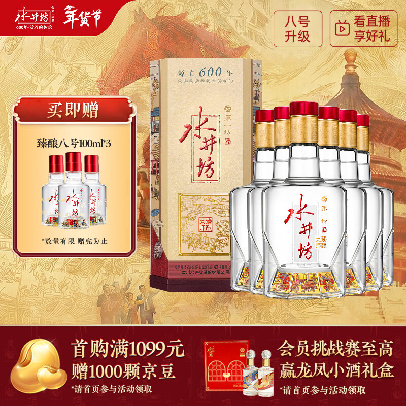自营水井坊【臻酿八号升级款】 臻酿大师 52度 500ml*6 整箱装