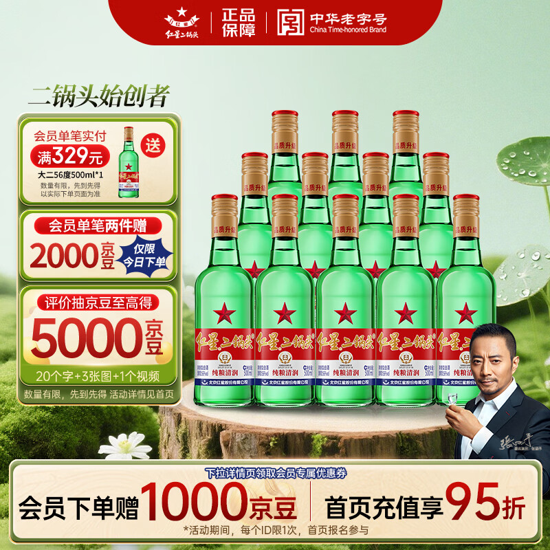 自营红星二锅头 大二 清香型白酒 56度 500ml*12瓶 整箱装 纯粮口粮酒