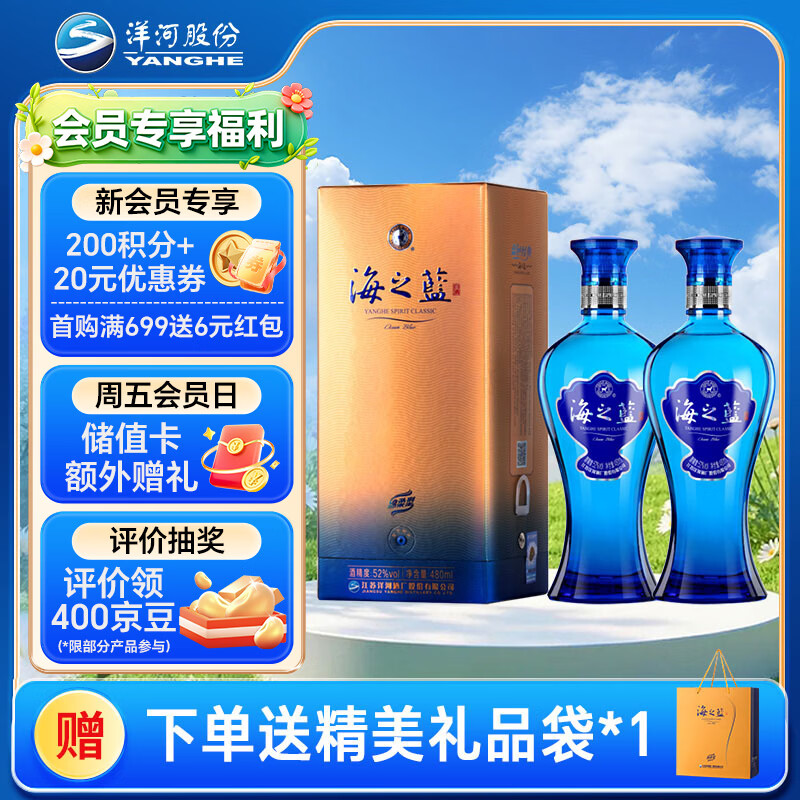 自营洋河蓝色经典 海之蓝 52度 480ml 双瓶装 (新老版本随机发货)