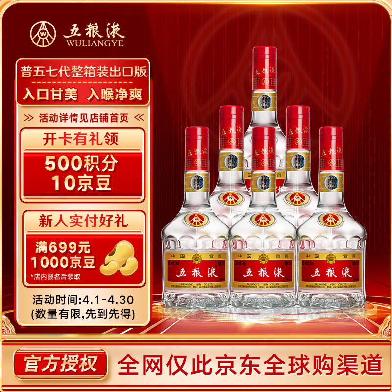 自营五粮液 普五 第七代 浓香型白酒 52度 500ml*6瓶 原箱 出口版 官方授权