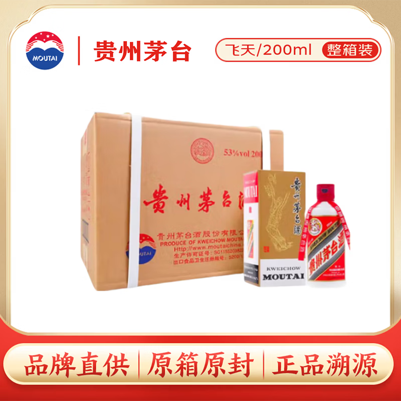 百亿补贴茅台 飞天 酱香型白酒 53度 200ml*12 整箱装【酒厂直供】
