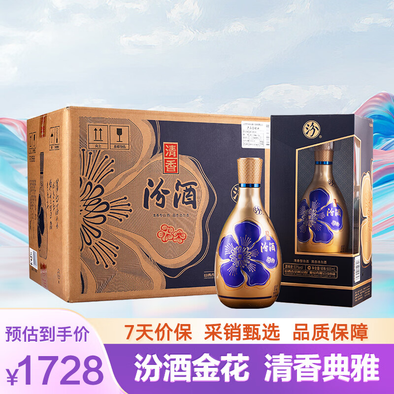 自营汾酒 金花汾酒 清香型 白酒 53度 500mL*6瓶 整箱装