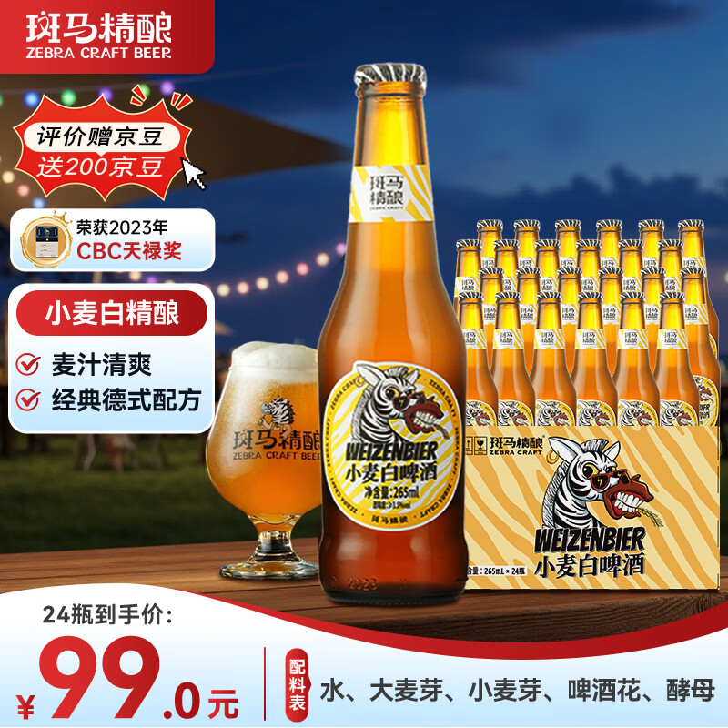 自营斑马精酿小麦白啤酒 全麦精酿白啤 国产精酿265ml*24瓶整箱新年送礼