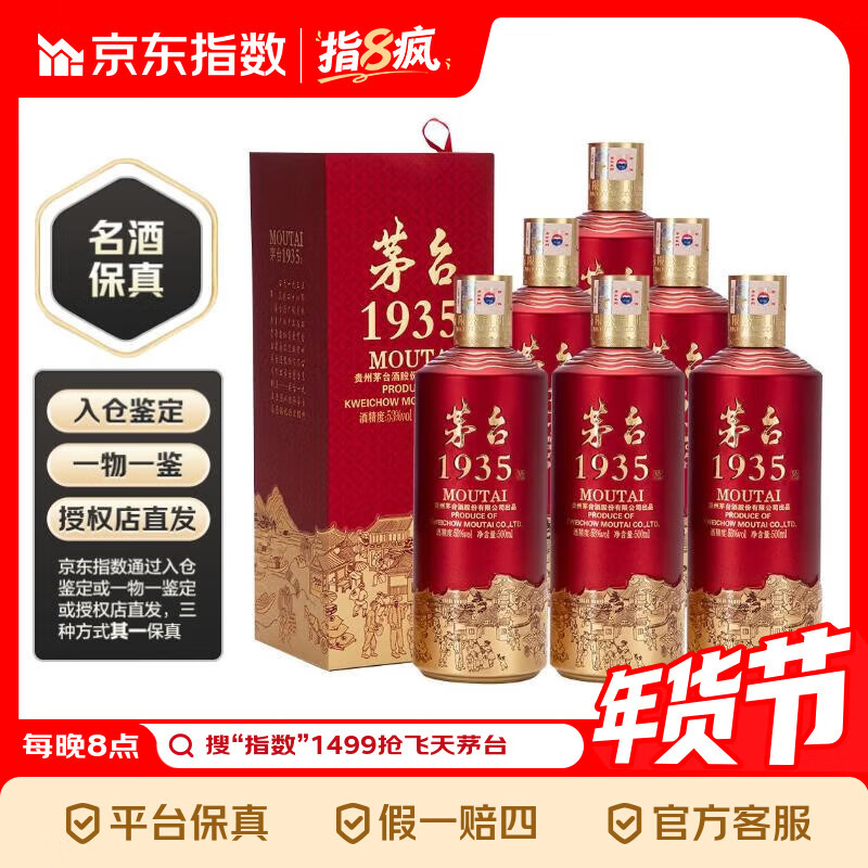 茅台(MOUTAI)1935 酱香型白酒 53度 500ml*6 整箱装指数 53度 500mL 6瓶