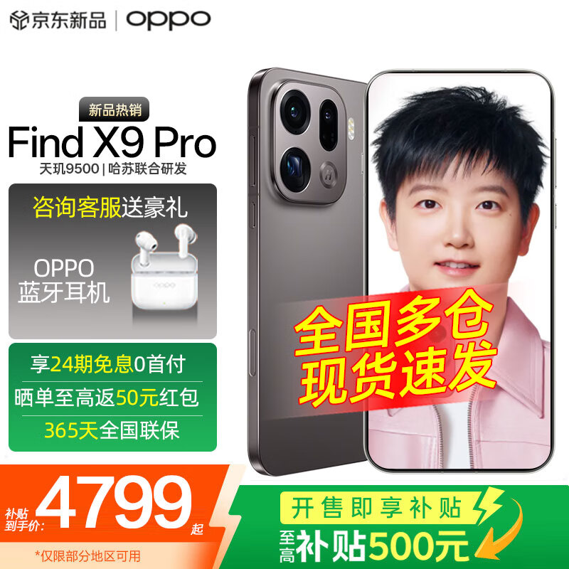 旗舰店OPPO Find X9 Pro 新品旗舰手机 够清晰够还原够哈苏 oppo find x9pro 消费券补 现货速发 快至当日达 绒砂钛 12GB+256GB 官方标配(咨询客服选好礼)