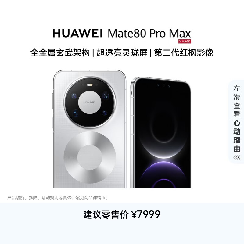 自营HUAWEI Mate 80 Pro Max 麒麟9030 Pro 16GB+512GB极地银全金属玄武架构超透亮灵珑屏鸿蒙系统华为手机