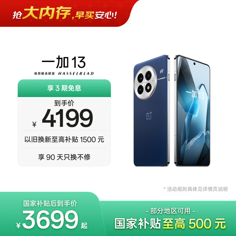 自营一加 13 16GB+512GB 蓝调时刻 oppo 国家补贴 高通骁龙®8至尊版 6000mAh 冰川电池 智能AI游戏5G手机