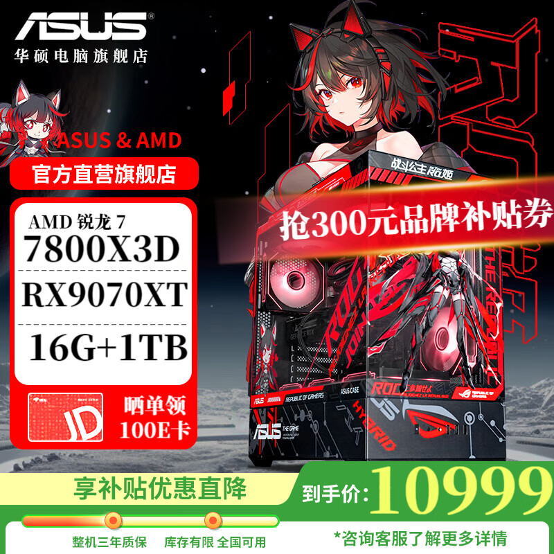 旗舰店华硕ROG全家桶AMD 9800 /9950 X3D/5060/5070TI/5080/90D渲染台式组装电脑游戏主机高端电竞海景房整机 配四 7800X3D/RX9070XT